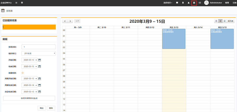 - 已创建排班表:完成编辑后确定保存的排班表,点击选中后即可在右侧时间栏查看和编辑排班。