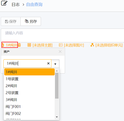 - 可选择按内容,按资产简单名称,按资产复合名称,按创建用户进行搜索。