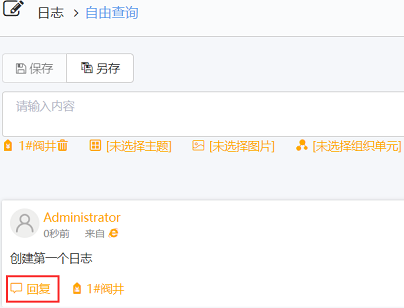 用户可以对相应的日志使用回复功能,单击回复,如图: