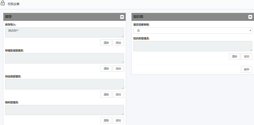 权限设置主要用来管理和配置库存各功能的管理员,和知识库是否需要审核、管理员是谁。