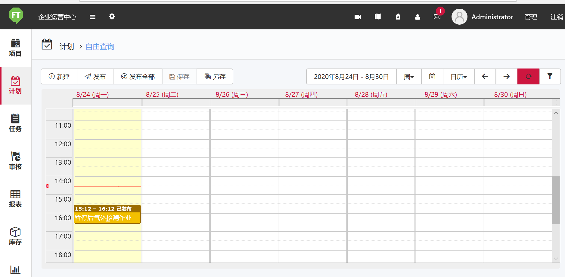用户登录企业运营中心后,在计划页面可以对作业组进行计划排程,即执行业务流程中的计划活动。