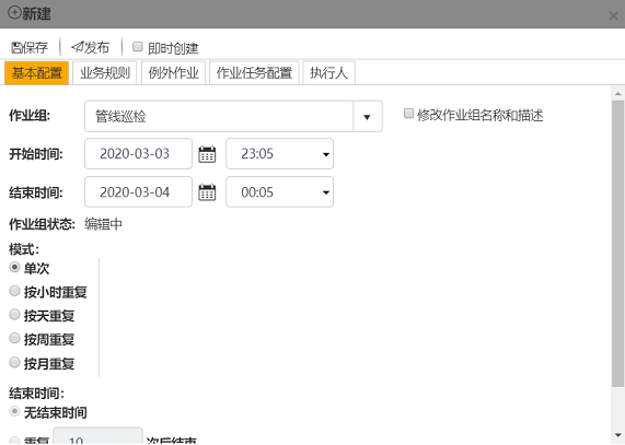 - 针对重复计划的序列,有两种修改模式,第一种是从点击的作业计划开始重新编辑该序列。如果你进行了保存或发布,将从该计划重新按照新的配置生成一个新的计划序列;第二种是点击转化为单次,你可以将该计划从序列中提出来,转换为一个单次的计划,然后进行修改,修改只针对这一个计划。