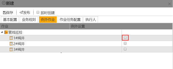 设置该作业组中的作业是否需要例外,即选定的作业不用执行。如勾选父级作业则将包含其子项,如只勾选子项则只有该子项被例外。用户可以通过例外作业灵活配置巡检内容,达到提高效率的目的。