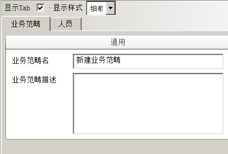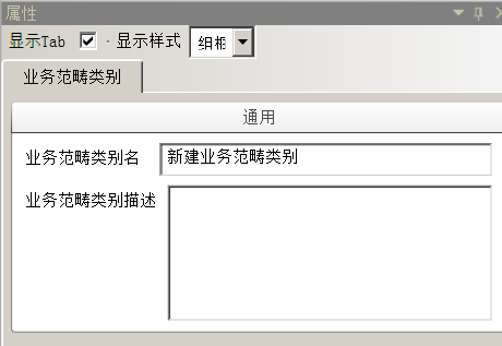 选中新建业务范畴,在右边属性栏中配置业务范畴的属性,如图: