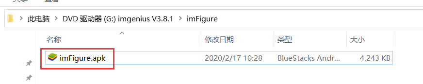 • 在安装包根目录路径下的【imFigure】 文件夹中找到imFigure.apk文件。如图:
