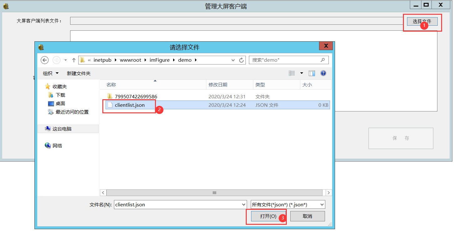 • 打开上一步建立的文件夹(本例名为demo文件夹),在该文件夹下新建名为【clientlist.json】的配置文件