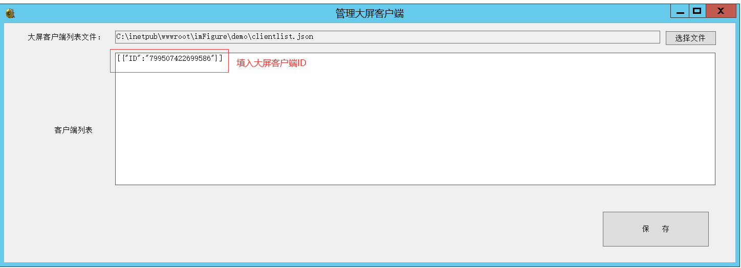 • 打开下载好的imFigureTool.exe工具,对【clientlist.json】文件进行编辑和保存。如图