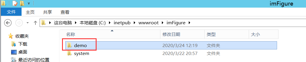 • 在 Eoc 部署路径下的【imFigure】 文件夹中(如无更改,默认路径为C:\inetpub\wwwroot\imFigure),建立与解决方案名称同名的文件夹。如图: