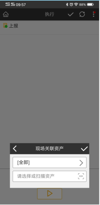 Version: next使用条码标签#支持一维码和二维码标签#系统中作业匹配资产 在资产中配置资产号,资产号形成一维码或二维码。在创建作业现场关联时可通过红外扫描或者相机扫描关联资产。解锁作业 当作业配置为必须扫描任意或条码时,执行时必须扫描此作业的资产号条码,才能打开作业执行。快速定位 扫描后,终端上快速定位到对应资产号的资产作业。也可快速打开包含条码内容的作业组名称和作业组描述对应作业组。输入字符串 字符串数据类型输入时,可扫描快速输入。