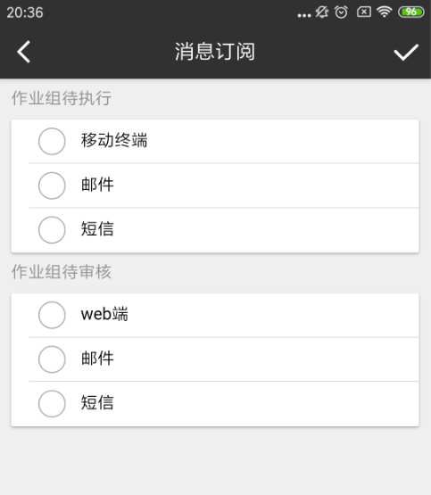 用户在登录之后,可以自行订阅消息。消息订阅主要对有些作业组待执行待审核等情况下,及时让相关用户收到提醒。