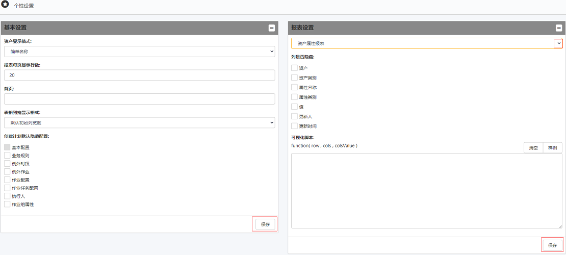 基本设置和报表设置,在个性设置后,点击各自下方的保存按钮即可。