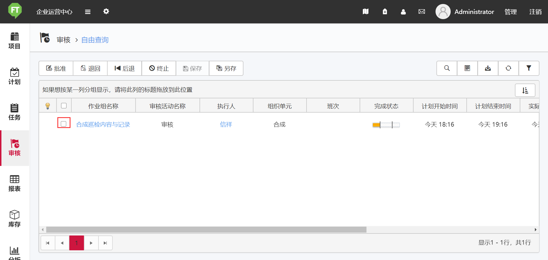 用户在审核页面可以对完成的作业组进行审核,即执行业务流程中的审核活动。