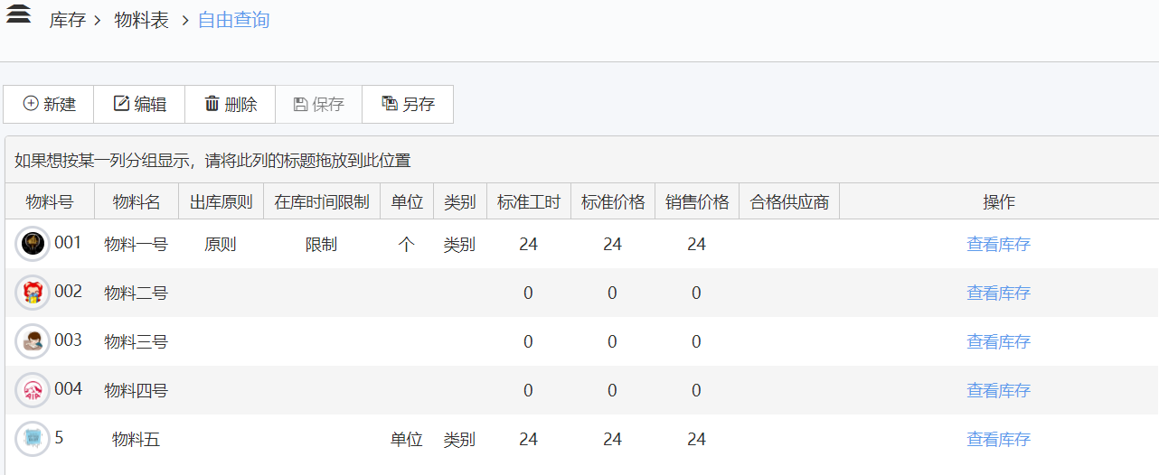 • 物料号:物料的编号,不可以重复插入。编号前面为物料图像,新建或编辑物料时可以为不同的物料设置不同的图像,文件必须为png或jpg格式。