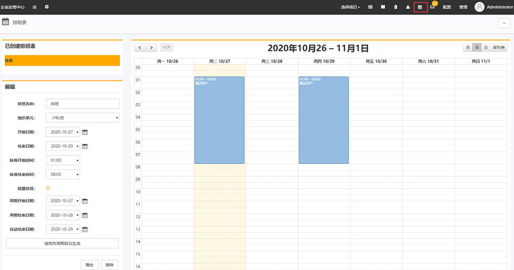 - 按规则周期自动生成:按照批量排班的日期设定自动生成排班。