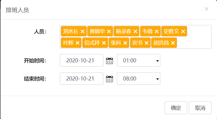 新建排班人员时,选择人员处,支持选择多人,同时进行排班