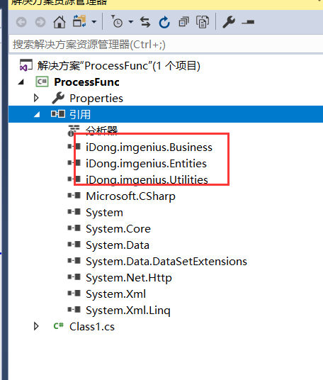 Class1.cs(名称可修改) 示例代码using FTIS.rockwelltpm.Business;using FTIS.rockwelltpm.Entities;using FTIS.rockwelltpm.Utilities;using System;using System.Collections.Generic;using System.Linq;using System.Text;using System.Threading.Tasks;namespace ProcessFunc{public class Class1{/// <summary>将作业组属性值写到日志中</summary>/// <param name="_businessProcessID"></param>/// <param name="_taskgroupEntityID"></param>/// <param name="_expression"></param>/// <param name="_isTry"></param>/// <returns></returns>public string WriteLog(Guid _businessProcessID, Guid _taskgroupEntityID, string _expression, bool _isTry, TaskGroupEntity _taskGroup, Guid _sessionID){if (_isTry)return string.Empty;if (_businessProcessID.Equals(Guid.Empty) || _taskgroupEntityID.Equals(Guid.Empty) || string.IsNullOrEmpty(_expression))return "参数不能为空";else{string name = _expression.Trim().Replace("\"", "").Replace("'", "");BTaskGroupEntity bTaskGroupEntity = new BTaskGroupEntity(_sessionID);TaskGroupProperty property = bTaskGroupEntity.GetPropertyByName(_taskgroupEntityID, name);if (property == null)return string.Format("作业组属性“{0}”不存在", name);imLogWriter.WriteWarning(string.Format("作业组属性“{0}”的值是“{1}”", name, property.Value));return string.Empty;}}}}生成解决方案 将输出目录中的