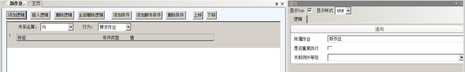 单击选项卡上方添加逻辑按钮,添加一个逻辑。选项卡内出现一个逻辑项目条。针对该逻辑,如果需要的话,用户可以在属性窗口选择关联的例外等级。