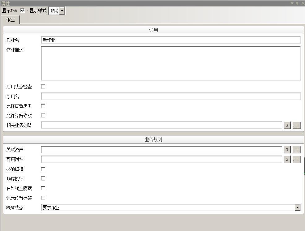 缺省状态 - 系统针对作业有三个状态(该状态不是 启用状态检查 中用户自定义的状态,而是启用状态检查的结果):要求作业,不要求作业,禁止作业。这三个状态可以根据作业逻辑动态变化。