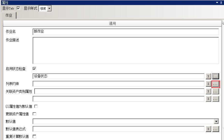 以属性值为默认值 - 以关联的资产类别属性值为该作业规范的默认值。
