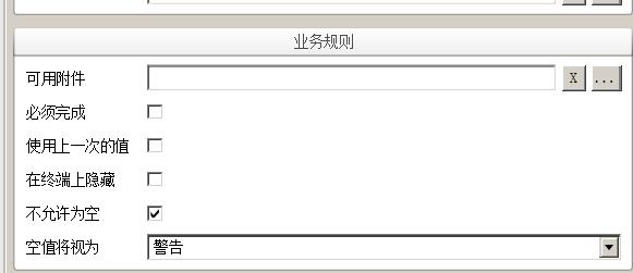 不允许为空 - 该作业项是否不允许值为空。如果不允许,用户可以指定值为空时视为警告还是错误。如果是警告,空值是允许录入的,只是不是有效数值,系统也将认为该作业项并未完成;如果是错误,手持终端上出现空值将无法继续。系统缺省设置为不允许为空, 为空视为警告。这一缺省设置适用于绝大多数的用户场景。
