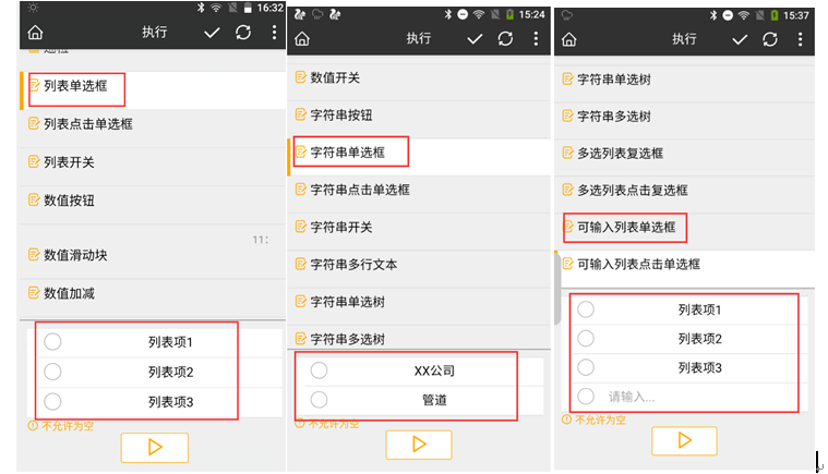 终端显示样式 - 选择以单选框、按钮、数字滑动块等方式输入作业项值