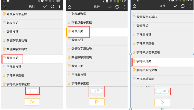 如果数据类型是列表,终端显示样式是开关,只显示列表前2个列表项,开关建议使用2个选项的场景数字滑动块