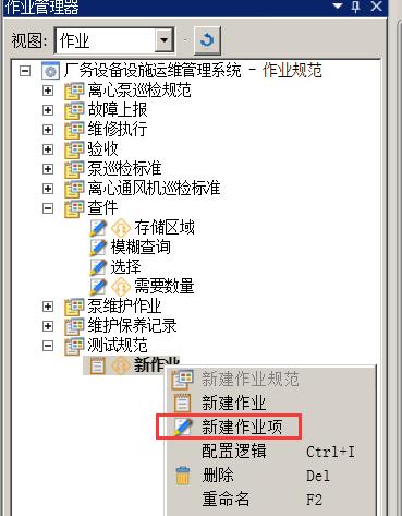 • 在 im 解决方案开发中心->作业管理器内,选中作业作业规范或者作业,右键选择新建作业项,创建一个作业。