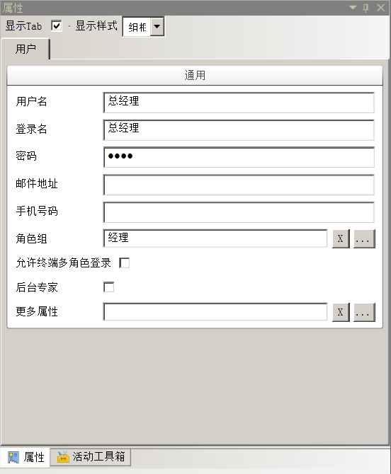 更多属性:为用户添加更多属性,在全局属性模板中用户属性模板中配置。