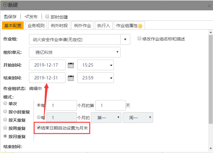 PBIN497:按月重复模式增加配置,结束日期自动设置为月末