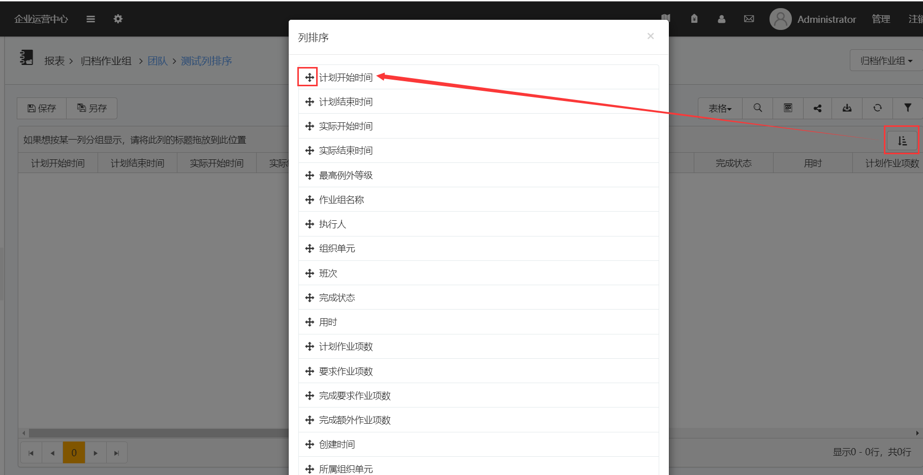 • 在报表中,新增加一个排列按钮,点击可对列进行排序,将鼠标放到相关列名前的图标处可进行拖动,点击确定即可保存顺序。