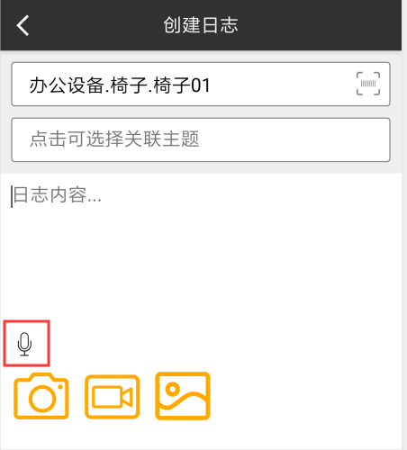 • 移动工作站中写日志时,支持语音录入,点击左下角麦克风图标即可开始录音。