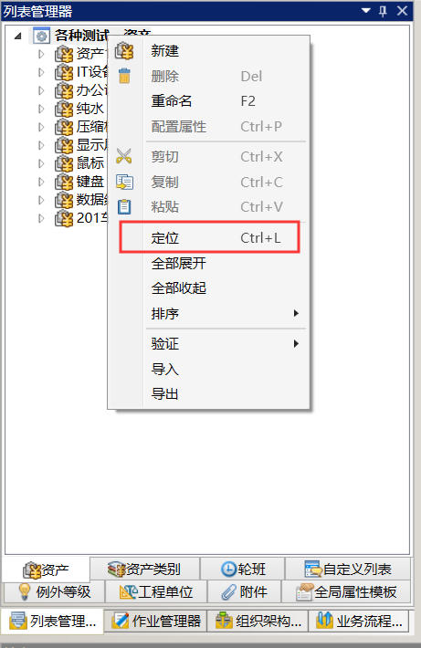 10. BugN518:SDC资产类别查找完以后双击查找结果无法定位