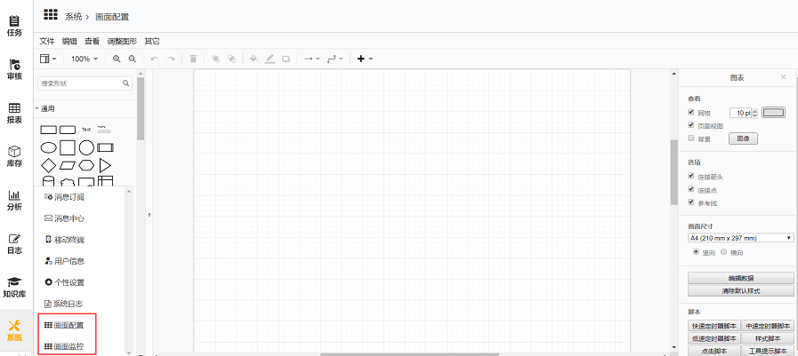 • 自行配置则可以在文件选项中选择新建,在左边通用栏选择图形或文本框,在画面栏进行自由配置。