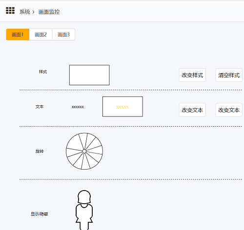 • 内容中存在脚本时,在调整图形的脚本里,会有相应的红点表示,脚本中的内容与编辑数据中的一致,脚本内容可点开查看,对应的效果在画面监控中可以体验到。