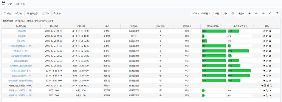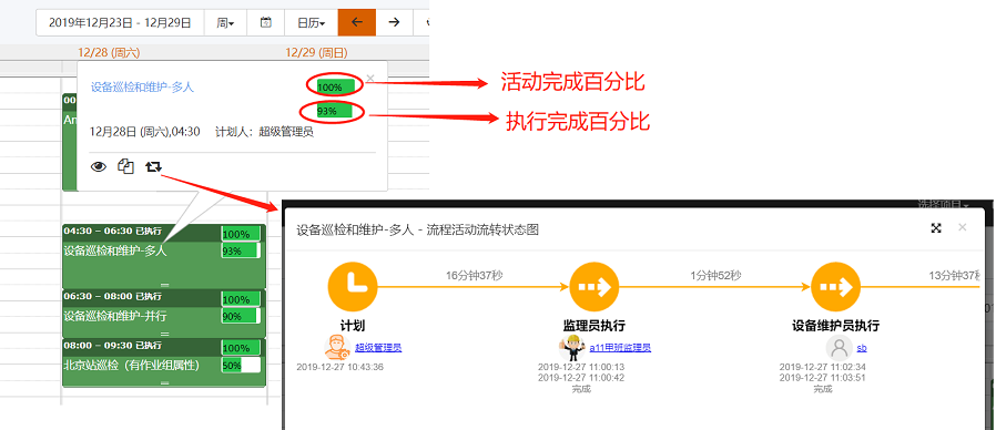 • 在计划视图中增加活动完成百分比和执行完成百分比的显示,同时增加查看流程活动流转状态图,如下: