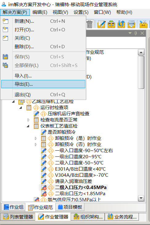 • SDC新增批量导出导出功能,进入解决方案后点击菜单栏→解决方案,可以选择导入或导出,并勾选需要导的实体。