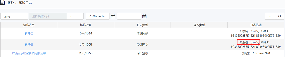 PBIN684:网页端终端同步日志中包含终端名