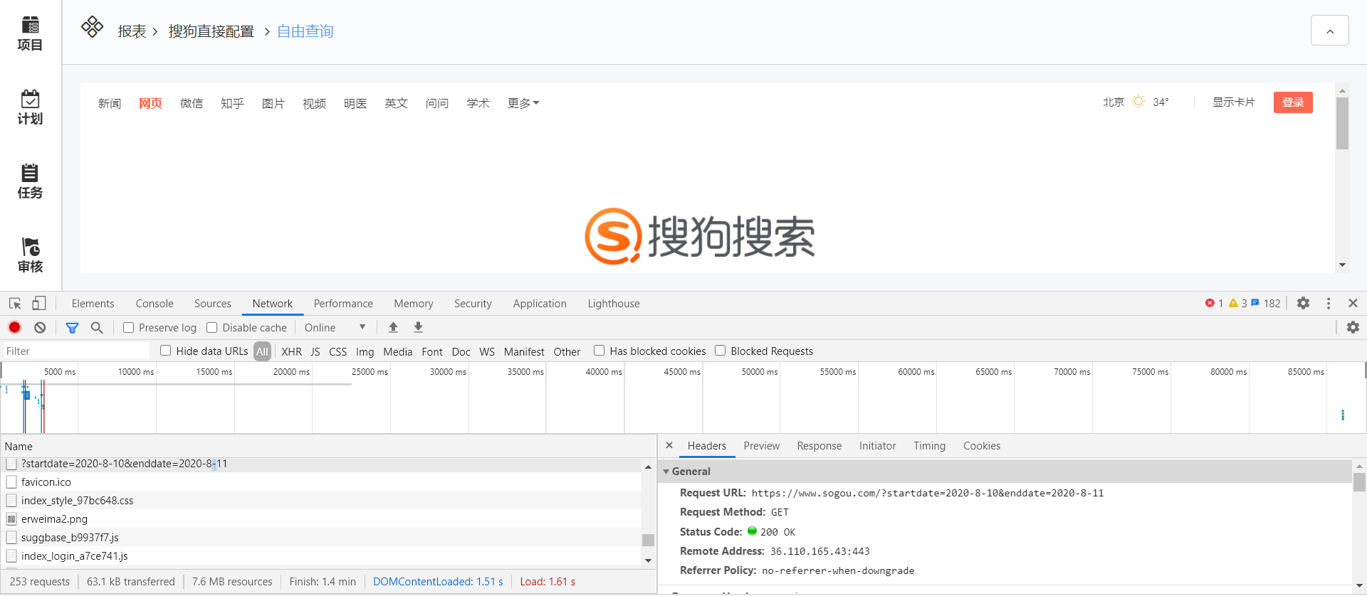 在访问这个扩展时,系统将自动把动态地址参数拼接到URL后面,本例即为:https://www.sogou.com/?startdate=2020-8-10&enddate=2020-8-11