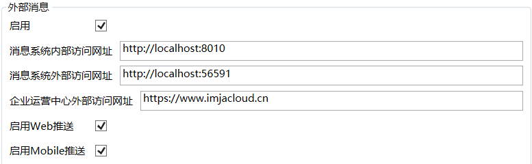 在服务中心的外部消息处,填写上相应的外部访问网址,比如
