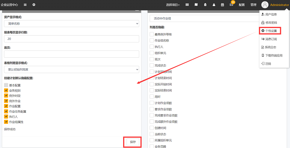 - 除administrator外的用户,如果没有进行任何配置,会显示为administrator配置的结果,如果进行了配置,则显示的结果为自身个性配置的结果
