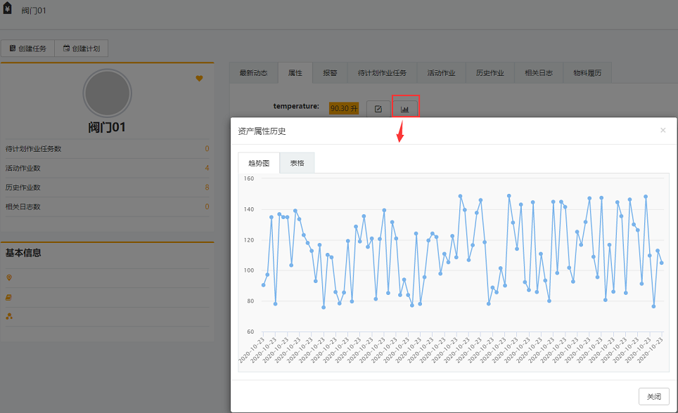 在EOC上的资产总览-属性中,刷新可看到数据在变化,可以在历史趋势和表格里看所有记录
