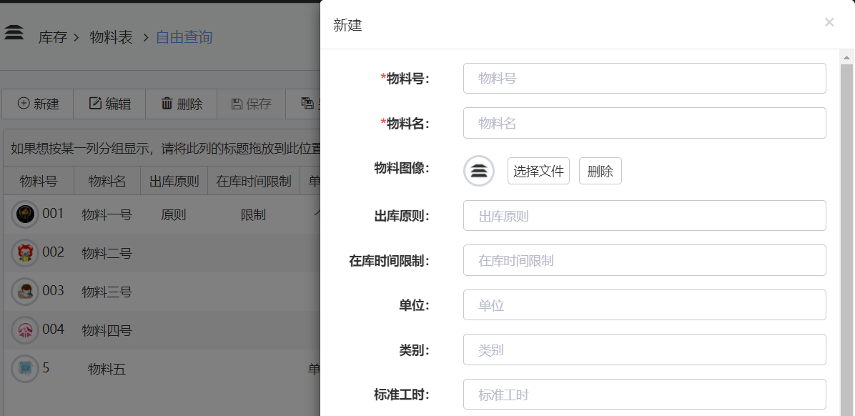 在EOC端物料表中,新建或编辑物料时,新增了物料图像选项,可以为不同的物料设置不同的图像加以区别,图像显示在物料号的前方