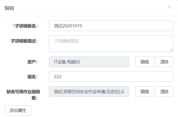 - 在新建和编辑子项模板窗口,增加了分组和缺省可用作业组模板项