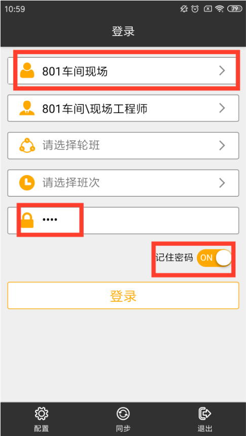 - 完成相应配置后,在登录页面先点击同步拿到用户数据,登录页面信息从上至下依次为;