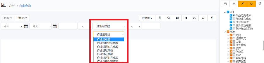 - 可选KPI—排列KPI指标-作业组完成率的具体量化指标供选择。
