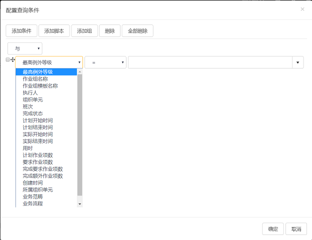 - 查询:设置自定义查询条件,可与筛选器配合使用,即在筛选器条件基础上添加自定义条件。