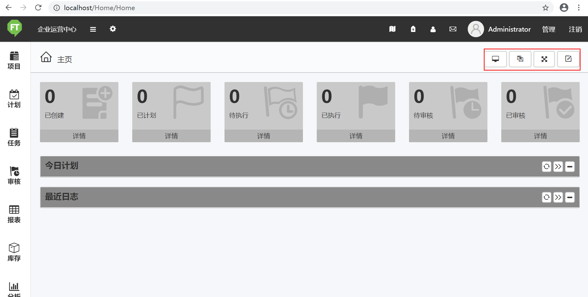 企业运营中心支持用户自定义主页内容,其缺省主页的内容是“我的作业”,列出了与当前用户相关的所有活动中的作业组。这些作业组还在业务流程中流转,并未结束归档。所有归档的作业组不在这里列出,用户可去“报表”中查询“归档作业组”的详情。