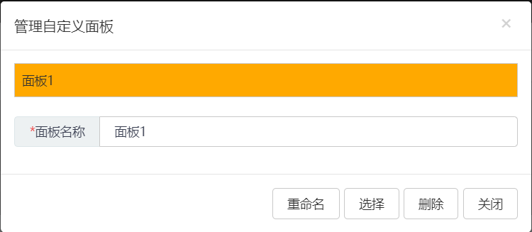 管理自定义面板,点击可以选择进入已保存的主页面板,为已保存面板重命名,删除已保存的面板,如图: