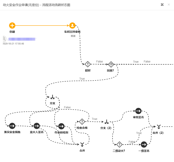 计划视图中,可以看到活动完成百分比和执行完成百分比的显示,同时当计划被创建后,可查看流程活动流转状态图。