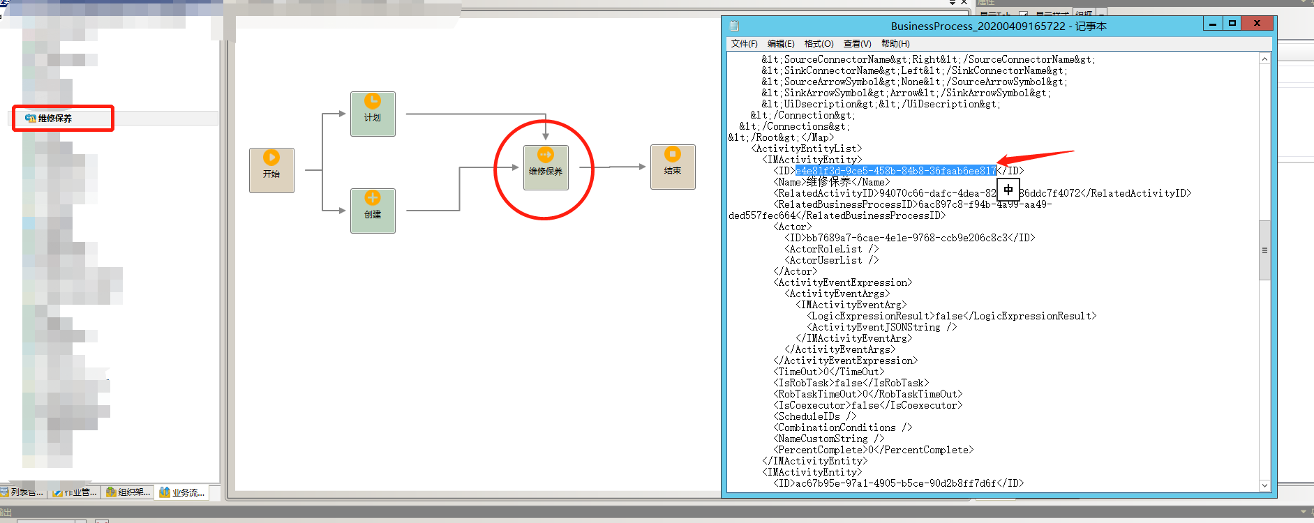 - 示例中的逻辑是,id为e4e81f3d-9ce5-458b-84b8-36faab6ee817且流程名为 维修保养 的流程节点结束后,获取作业组的所有属性